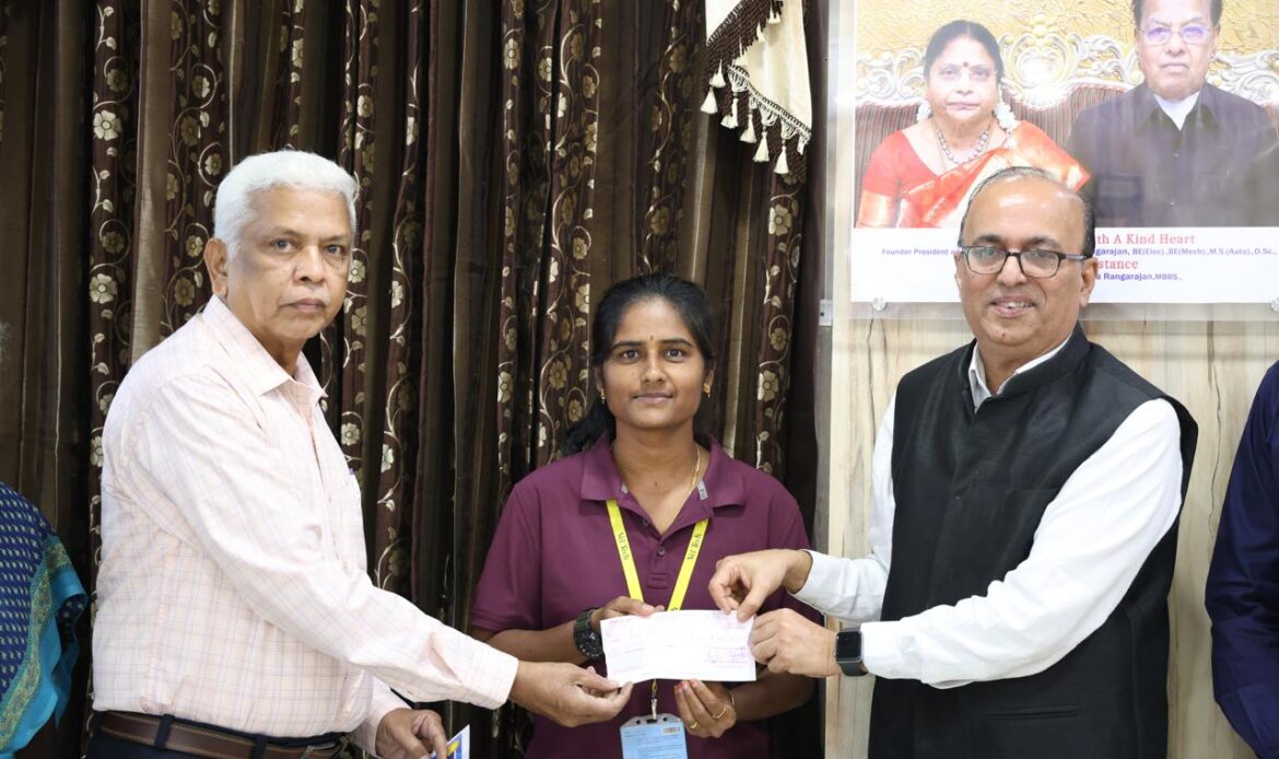 On 23rd December 2025 at Vel Tech Rangarajan Dr.Sagunthala R&D Institute of Science and Technology, Chennai, Tamil Nadu, India scholarship award and certificate under J&A BHF Keval Shanti Scholarship Program 2025 was handed over to Mrs. Abirami Arumugam, by J&A BHF Advocate Mr K Dakshinamurthy in the presence of Vice Chancellor Dr Rajat Gupta, Faculty and students.