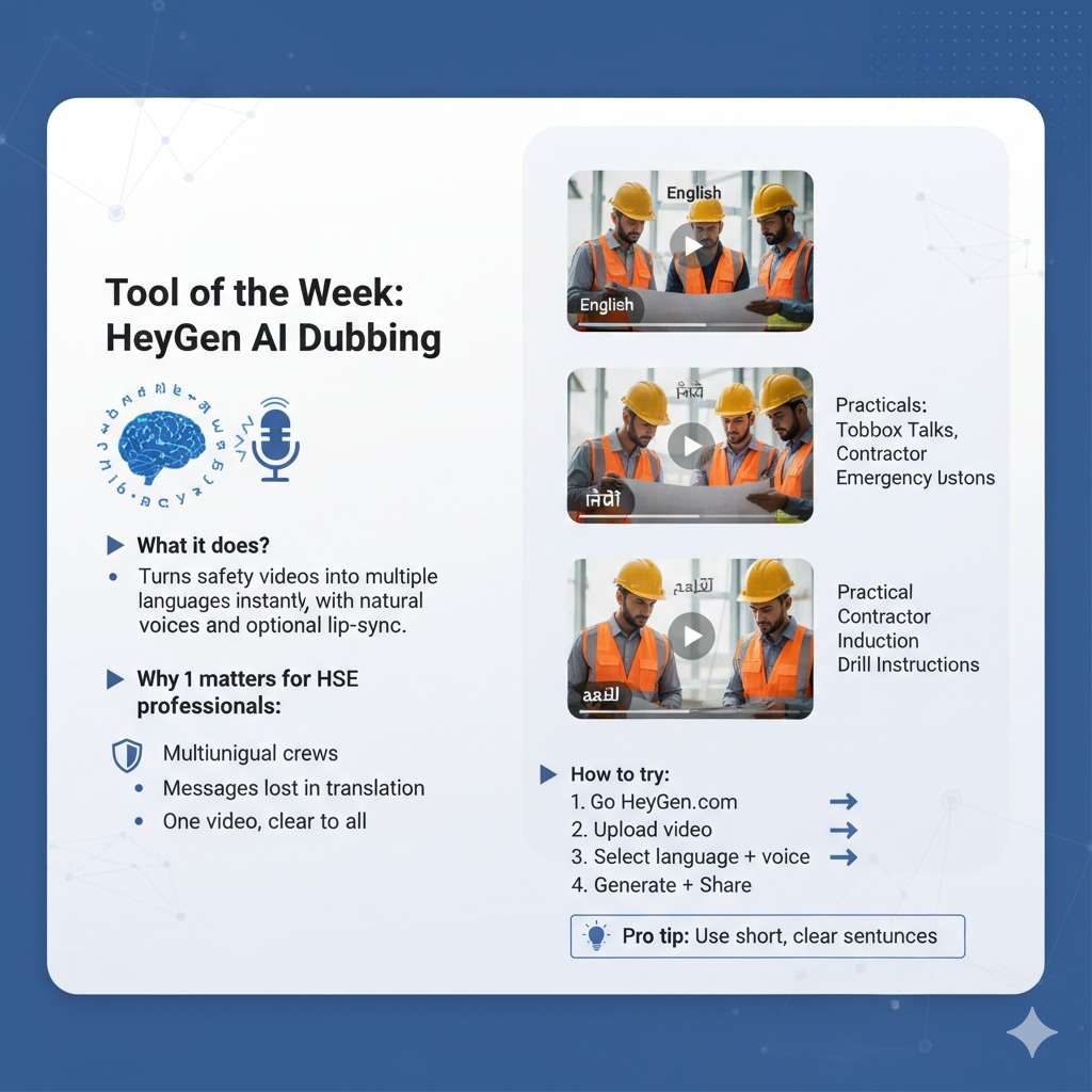 Why it matters for HSE professionals: – Many sites have multilingual crews—English, Hindi, Arabic, Tagalog, etc. – Safety messages often get “lost in translation” when only shared in one language. – With HeyGen, one video can speak to everyone clearly.