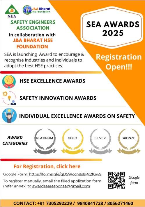 We J and A Bharat HSE Foundation (J and A Global HSE Foundation) are pleased to announce that we are collaborating with the Safety Engineers Association HSE Awards 2025, a prestigious platform that recognizes excellence in Health, Safety, and Environment (HSE) practices.